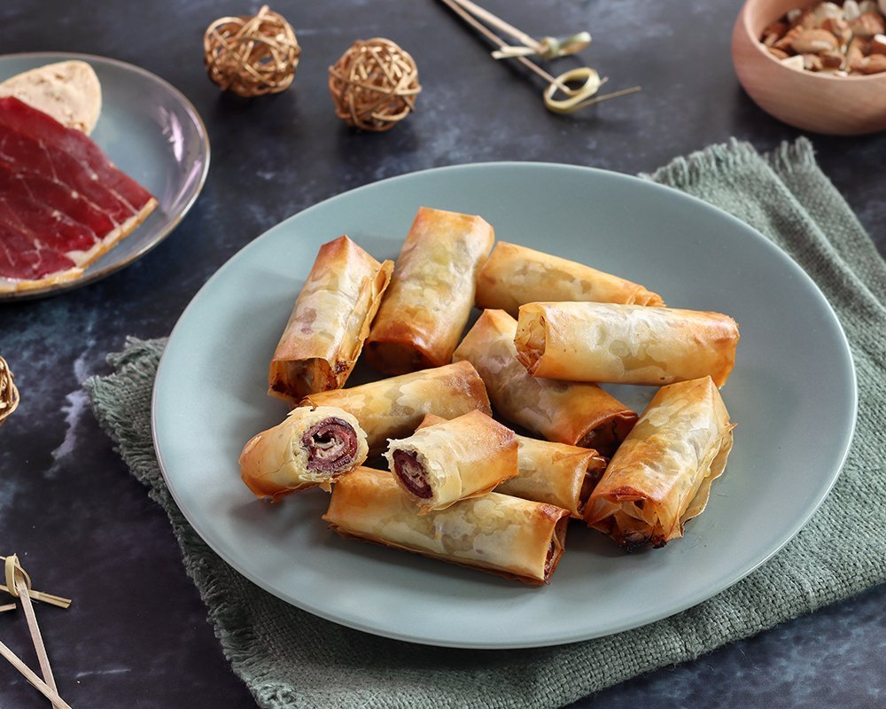 Small filo pastry rolls with Foie Gras and smoked duck breast